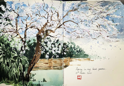 I still remember the joy I felt when I saw this tree in full bloom for the first time, from the kitchen window of our then new home. It has never failed to bring us joy every Spring for the past 10 years, but this is the first time I’ve felt brave enough to give it full credit with my paint brush.